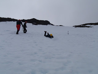 Today I was working on the 1st day of a 4 day Winter Mountaineering course. We headed up to Aonach Mor and covered basic winter skills - moving on snow and ice with and without crampons, cutting steps, self arresting, avalanche awareness; quick pits, Rutchblocks tests etc and finished off at the cafe after a small journey up to the wee cairn. Tomorrow Paul, Mark and Dave are going to be going out with Karl to cover rope work skills and I'm going to head out with them and shadow and assist. We experienced some rain and very brief snow higher up but nothing substantial and it felt fairly mild.