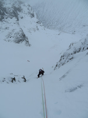 Claire and Ian are back for another instalment of winter. In previous trips with me they have done the CMD arete, Ledge Route and Curved Ridge. This time we kicked of with the Aonach Eagach which was in superb condition. The cloud was in low but as we neared the end, it cleared for spectacular views along the ridge. Day two we climbed Number 3 Gully Buttress on Ben Nevis which was great with a nice ice pitch at the start. Our final day, warm and wet, didn't produce any pictures. Despite the poor weather, we climbed North Buttress on Buachaille Etive Mor which was essentially a very wet experience but equally very satisfying. Hopefully I will see them both again soon, especially and Claire has unfinished business on the Cuillin Ridge! ;)